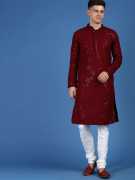 Reso Men Embroidered Straight Kurta (Maroon)