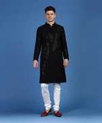 Lucknowi Men's Kurta with white premium pyjama Set for all occassions in different colours like Black Maroon Ramablue navyblue maroon yellow