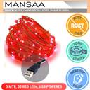 MANSAA 30 LEDs 3.05 m Red Steady String Rice Lights (Pack of 1)