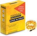 MANSAA® 50 LEDs 5 m Yellow Steady Water Drop Rice Lights (Pack of 1)