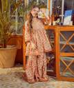 Girls Wedding Angarkha and Sharara Set Girls Festive & Party Angarkha and Sharara SetGirls Festive & Party, Wedding, Casual Angarkha and Sharara Set Girls Wedding Angarkha and Sharara Set Girls Floral Printed Angrakha Pure Cotton A-Line Kurta With Sharara Dupatta - Mini Marvels White Multi Floral Printed Angrakha style kurta has a V- neck, three-quarter regular sleeves Calf length with flared hem with Elasticated waistband Sharara With Dupatta White Ethnic Motifs Printed Anarkali shape Kurta has a Round-Neck, three-quarter regular sleeves, Calf length with flared hem with Elasticated waistband Sharara set With Dupatta