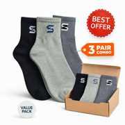 Click 'Buy Now' to secure your pack of premium ankle-length socks and enjoy unmatched comfort all day long., Versatile Solid Colors: Available in classic shades of black, grey, and navy blue, these socks complement any outfit, making them suitable for a variety of occasions., Ankle-Length Design: These socks offer the perfect length for a sleek and modern look, ideal for casual wear or sports activities.