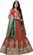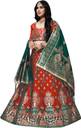 Mansvi Fashion Floral Print Semi Stitched Lehenga Choli (Red, Dark Green)