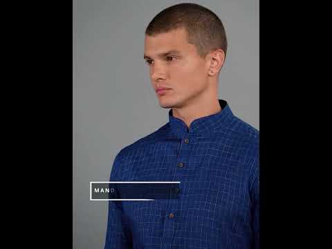 Manthan Men Checkered Cotton Blend Straight Kurta (Blue)