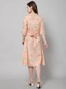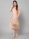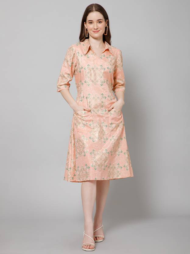 Women Fit and Flare Orange, Green, Beige Knee Length Dress