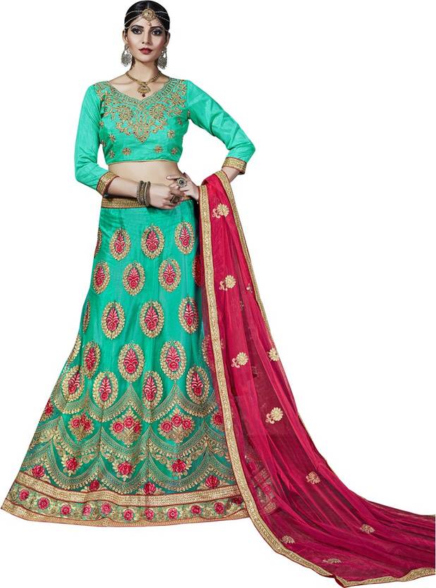 Women'S Spring Green Color Embroidered Worked Net Fabric Lehenga Having Pink Color Of Dupatta Of Net Fabric And Spring Green Color Of Unstitched Blouse With V Neck And Quarter Sleeves Of Bangalori Silk Fabric And Inner Of Sattin Fabric . Images Are For The Referance Purpose Only, Color Of The Actual Product May Little Vary From The Image Due To Screen Resolution
