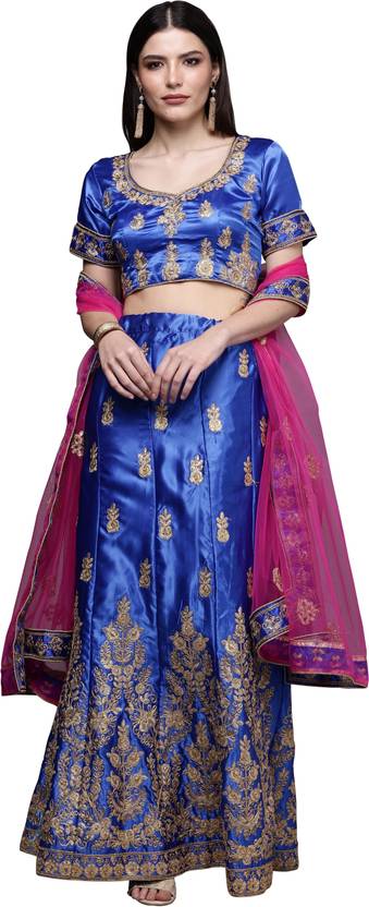Embroidered Semi Stitched Lehenga Choli (Blue)