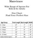 Manvicare offers a unique collection of kid’s apron for age group 5 to 7 years This kind of apron you won't find anywhere else . They are waterproof and light weight . Your kid can rub hands on it as its ultra soft terry towel fabric.. We offers adults aprons also . You can check in our store. We are the manufacturer & can make any size of apron on demand . Please feel free to contact us for any query.
