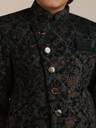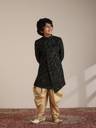 MANYAVAR Dark Green Velvet Foil Print|Stone Work Indo Western Patiala Set For Child Printed Sherwani