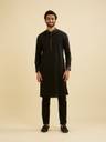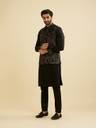 Manyavar Black Velvet Print|Stone work|Embroidery Kurta Jacket Set for Men
