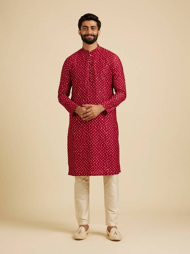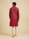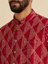 Manyavar Red Blended Viscose Embroidery|Sequin Work Kurta Jacket Set for Men