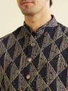 Manyavar Blue Blended Viscose Printed| Sequin Work Kurta Pyjama set for Men