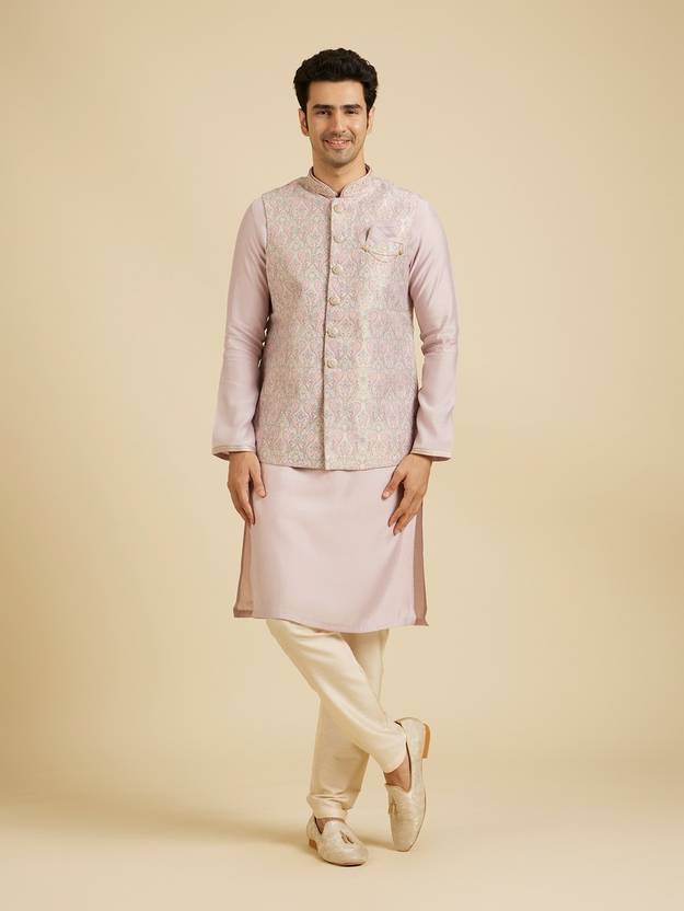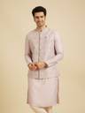 Manyavar Pink Brocade Printed Kurta Jacket Set for Men