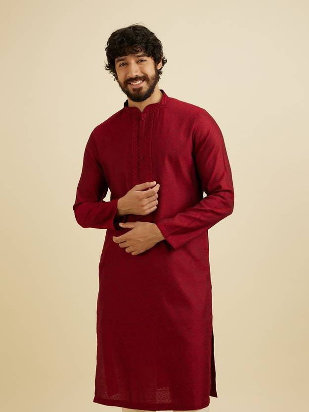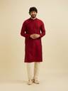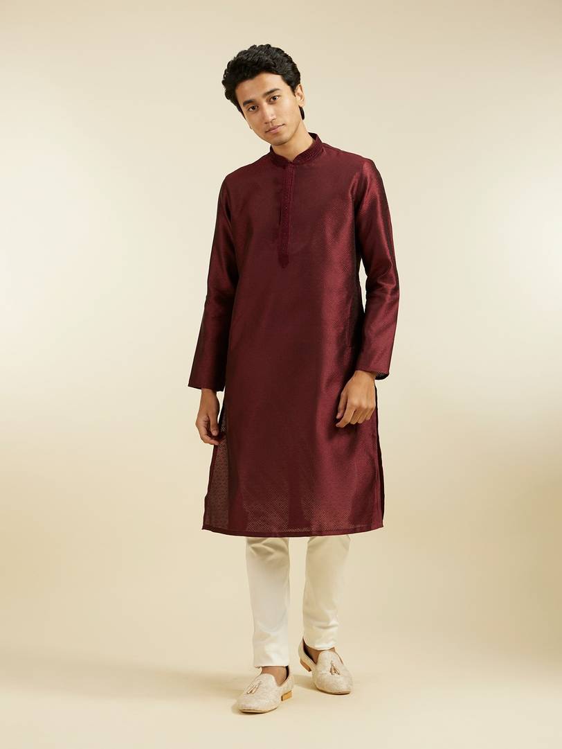 Manyavar Maroon Viscose Blend Embroidery|Stone Work Kurta Pyjama Set for Men