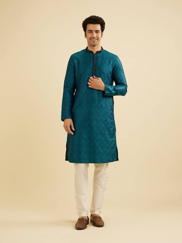 Manyavar Green Brocade Self Design Kurta Pyjama Set for Men