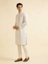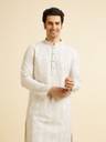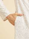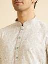Manyavar Green Blended Cotton Chikankari|Print|Thread Work|Sequin Work Kurta Set for Men