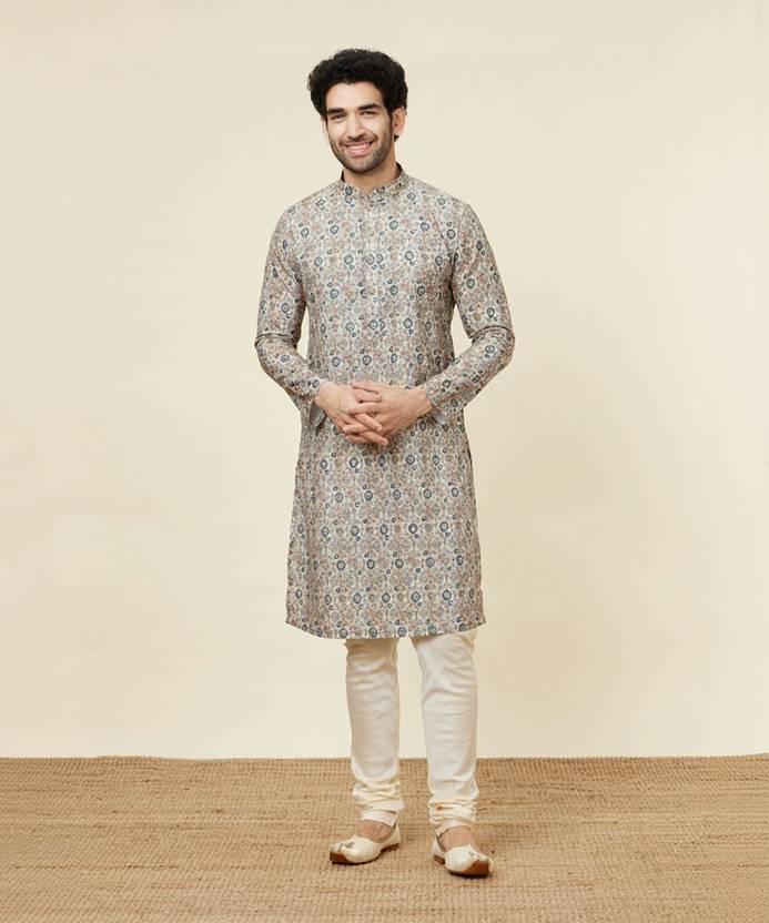 MANYAVAR Men Printed Straight Kurta (Beige, Blue, Brown)