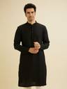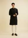 MANYAVAR Men Self Design Straight Kurta (Black)