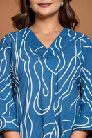 Sporting a V-neckline and three-quarter sleeves, the kurti in this set offers a refined structure while maintaining comfort. The classic straight cut enhances structure, while the side slits facilitate easy movement. Furthermore, when paired with the straight-cut pants, the kurti creates a balanced ensemble that complements a variety of body shapes. Overall, the relaxed fit ensures both comfort and style, making this outfit ideal for extended wear.