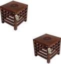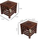manzees Wooden Beautiful Handmade Stool | Table | for Office | Home Furniture | Outdoor ( Set of 2 ) ( 12 inch by 12 inch ) Solid Wood Corner Table (Finish Color - Brown, Pre-assembled)
