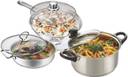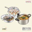 Maple Enchant Stainless-Steel 3 Piece Gift Set - (Kadhai, Fry pan and Ultra Cook N Serve Casserole) Induction Bottom Cookware Set (Stainless Steel, 3 - Piece)