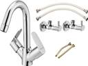 1 Piece Center Hole 2x1 Mixer Tap, 2 Piece Angle valve with wall Flange, 2 Piece Connection Hose Pipe