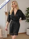 • Made from smooth and comfortable fabric that feels gentle on the skin., Beautiful lace trim adds a stylish and feminine touch to the robe.