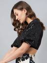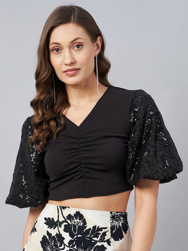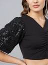 Women Casual Black Colour V-Neck Solid Styled Back Top