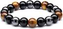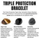 What you get: 1 pieces triple Protection Bracelet, each chain contains Hematite, Black Obsidian, Tiger Eye, ideal for protection, bringing the meaning of good luck, the quantity can meet your needs. Positive meaning: The natural tiger's eye stone is believed to resist evil, help hypnosis and deep meditation, enhance people's observation and insight, enhance overall balance and mood. Hematite minerals are thought to relieve pain, reduce stress and increase self-confidence. Obsidian is believed to have healing and protective effects. Adjustable size: The diameter of the beads on the bracelet is 0.39 inches. The bracelet cord is made of stretchable elastic material, suitable for most men and women.. Meaningful gift: This bracelet can be applied as a meaningful gift for your girlfriend, boyfriend, father, wife and mother on Christmas, Anniversary, Valentine's Day, Mother's Day, Father's Day and birthdays. , Express your warm wishes to them.
