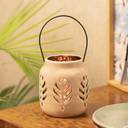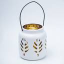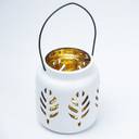 MARKET 99 White Ceramic T-Lite Holder - Leafy Pattern, Candle Holder Ceramic Candle Holder (White, Pack of 1)