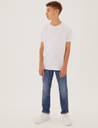 The timeless look of jeans goes well with any outfit, and these kids jeans are classic. Made from a cotton rich mix, theyre lightweight and breathable, and with added stretch, theyre made with comfort and fit in mind. Finished off with a secure button and zip fastening and front pocket detailing, these cotton jeans are sure to become a wardrobe staple. All M&S denim is made with responisibly sourced cotton and less water.