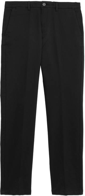 MARKS & SPENCER Men Regular Fit Black Cotton Blend Trousers