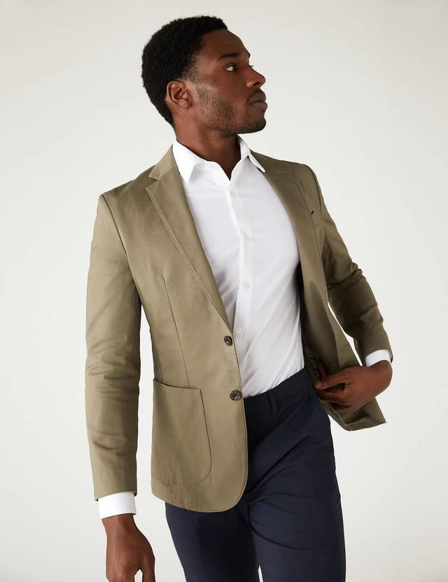 This cotton-rich blazer combines classic styling with comfort. Added stretch means it moves with you. Plus, it's part-lined for easy wear and features two patch pockets for your everyday essentials. The traditional design is finished with notch lapels, a buttonhole and edge-stitched seams.