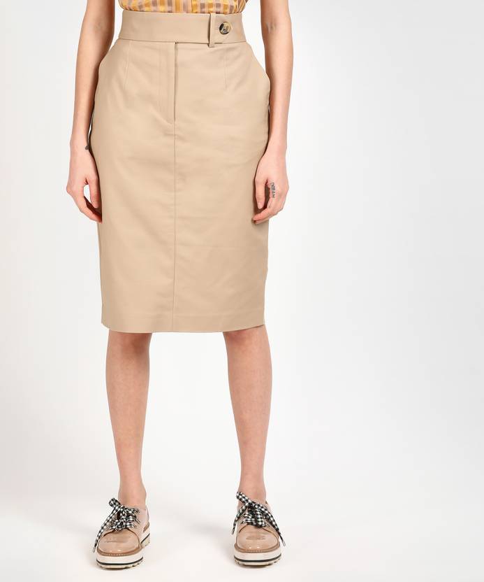 MARKS & SPENCER Solid Women Pencil Beige Skirt