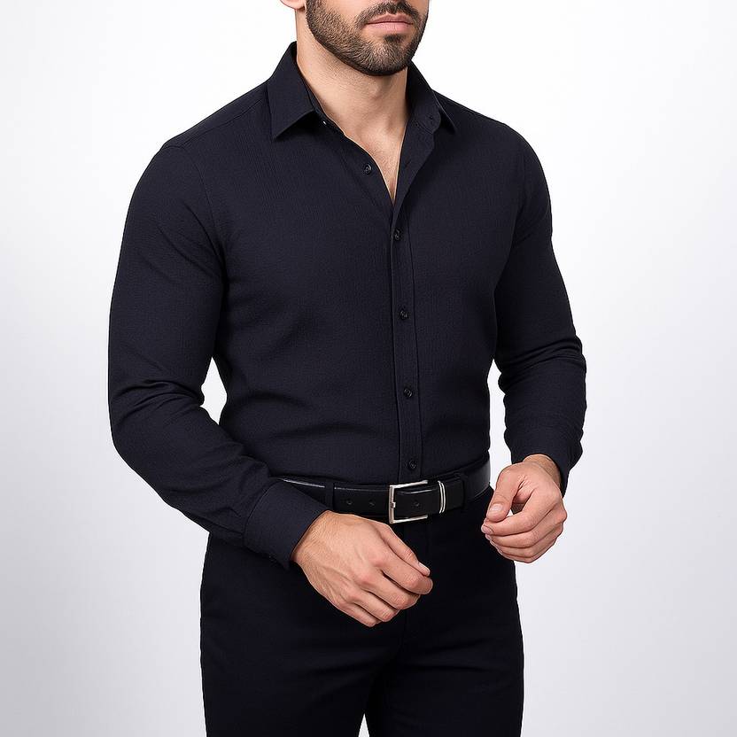 Men Slim Fit Solid Spread Collar Formal Shirt