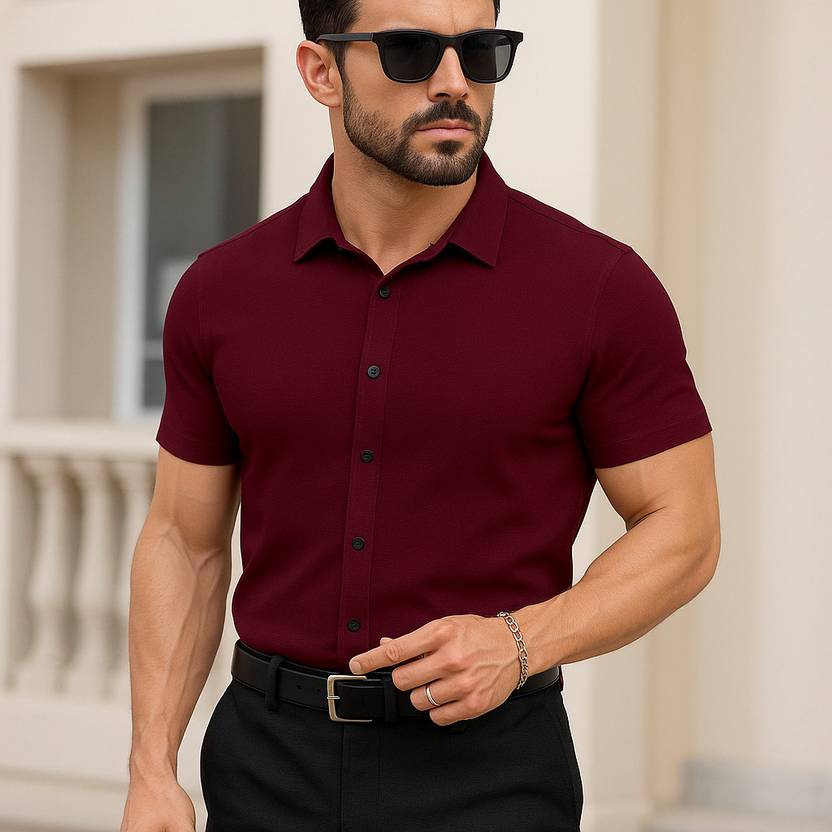 Marmic Fab Men Solid Formal Maroon Shirt