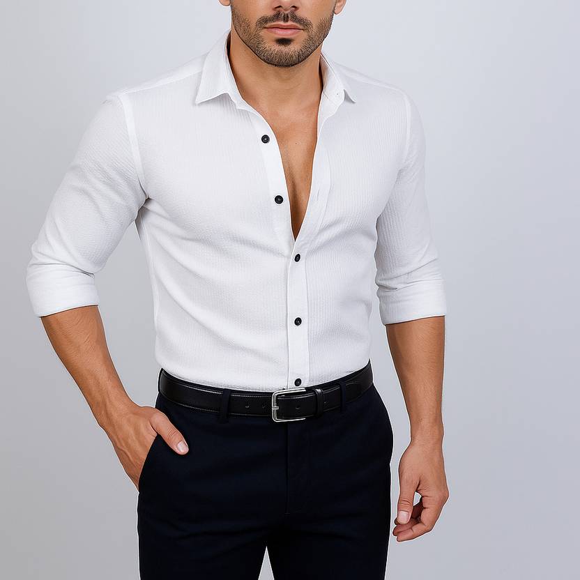 Men Slim Fit Solid Spread Collar Formal Shirt
