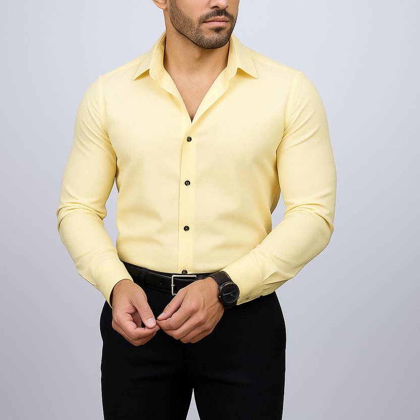 Men Slim Fit Solid Spread Collar Formal Shirt