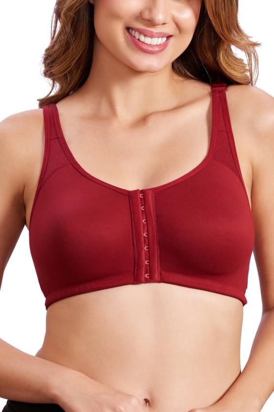 Made from a blend of cotton and lycra, this bra can offer a soft, breathable feel against your skin. And, with its non-wired, non-padded design, it can prevent bounce, ensuring maximum comfort and support without any unnecessary bulk. Moreover, equipped with a convenient front closure and back support, this bra can offer easy wearability and added stability. Hence, you can get in and out of this bra without facing any hassle while enjoying enhanced posture and comfort.
