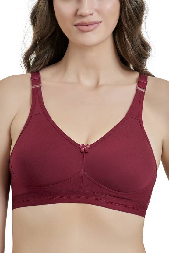Maroon MAROON Maroon Cotton Blend Non Padded Women's Set of 1 Full Coverage Bra Women T-Shirt Non Padded Bra (Maroon)