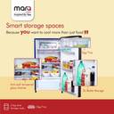 Organized is now the new smart! Along with having a 10 L large vegetable crisper, this refrigerator comes with separate space for eggs, 2 big door racks for storing bottles which comes with a bottle separator, and dedicated storage spaces for masalas as well as cosmetics.
