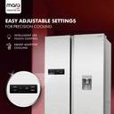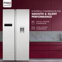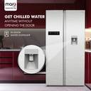 Keep your food items refreshed with this MarQ Side-by-Side refrigerator, featuring an indoor water dispenser for easy access to chilled water anytime without opening the door. This smart feature also enhances convenience while maintaining cooling efficiency and reducing energy loss.