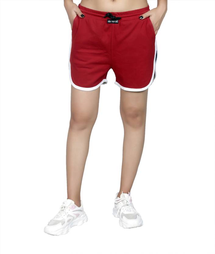 MARRONĀ Striped Women Black, Maroon Regular Shorts
