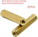 M3 X 20mm Dual Ends Brass Pillar PCB Standoff Hexagonal Spacer, Hex Brass Standoff spacer Female to Female Spacing Screws Double pass Hex Long Nuts Gold tone- Pack of 25 Pcs.