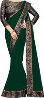 Maruti Creation Solid/Plain Bollywood Georgette Saree (Dark Green)