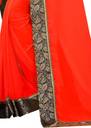 Maruti Creation Solid/Plain Bollywood Georgette Saree (Red)
