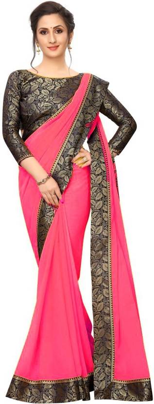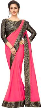 Maruti Creation Solid/Plain Bollywood Georgette Saree (Pink)