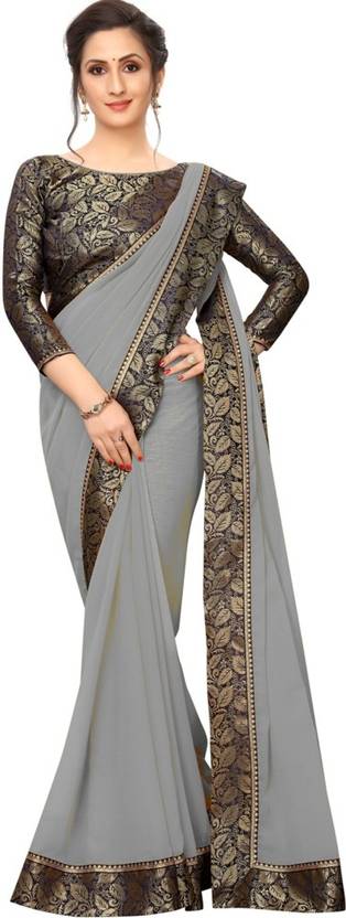backtostyle Self Design, Solid/Plain Bollywood Georgette, Chiffon Saree (Grey)