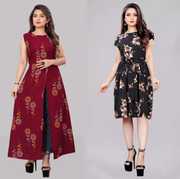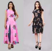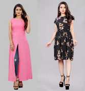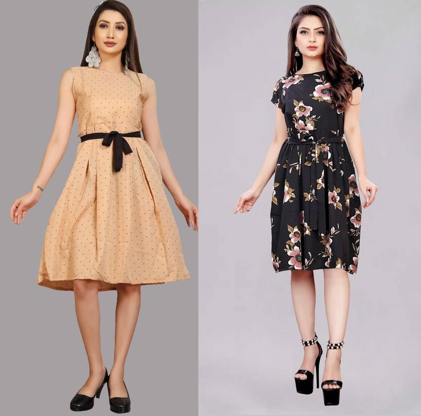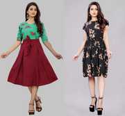 A good quality dress for women. It will give them a classic and trendy look.This is designed as per the latest trends to keep you in sync with high fashion and with wedding and other occasion, it will keep you comfortable all day long. The lovely design forms a substantial feature of this wear.This is floral printed western knee length dress which is made of fine quality crepe fabric and also it is stitched as western look. belt which is create tredy look on your outfit. floral printed western anarkali flared dress has printed and flared dress is available it can wear causual, party, function etc it is unique in pattern and sleeveless (short sleeve attached inside) is available fabric is soft so it is comfortable to all day. we have also manufacture wester wear dress dress , printed dress , floral printed dress , floral printed Dress , one piece dress , skater dress ,dress , combo western dress , frock dress , checked western dress , striped wetern dress , party wear dress , casual gown, party wear gown , floral printed gown , striped dress , digital dress , striped dress , casual dress , daily wear dress , regular dresses at low price so please visit our store for more collection
