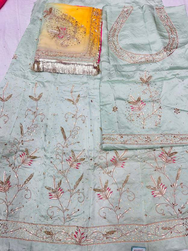 Embroidered Semi Stitched Rajasthani Poshak (Light Green)